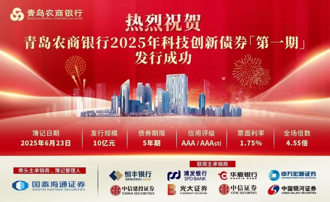 近日,恒丰银行承销的青岛农村商业银行股份有限公司2025年科技创新债券(第一期)在中国银行间债券市场成功发行,标志着山东省首单科技创新金融债券正式落地,实现了全省金融机构发行科技创新债券的突破,也是全国农商行首单科技创新债券。